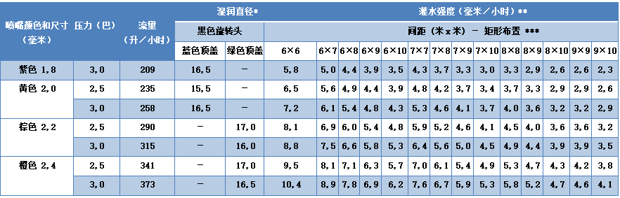 5. 有效濕潤直徑2.5公斤時大于17.0米